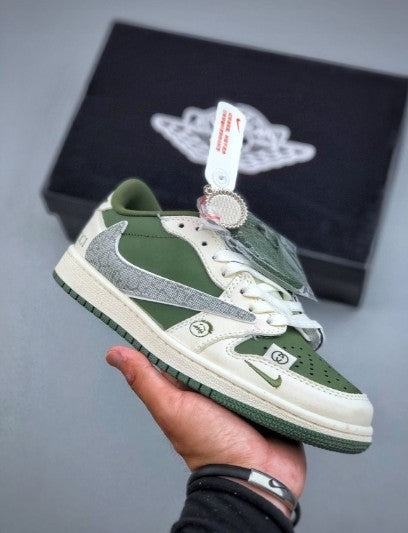 The N_ikee Air Jordan 1 x Travis Scott features premium materials with Travis’s signature reverse Swoosh design, earthy tones, and unique detailing, blending streetwear style with Jordan heritage.