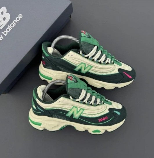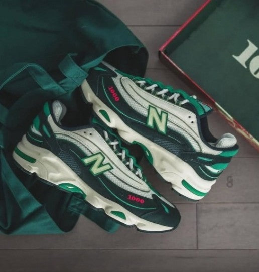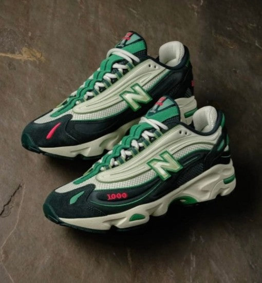 The New Balance 1000 Concepts "Mile" is a standout collaboration between New Balance and renowned retailer Concepts. This sneaker brings a bold aesthetic with a retro-futuristic design, featuring a mix of mesh and synthetic overlays. The colorway blends shades of grey, silver, and light blue with vibrant detailing, inspired by the idea of pushing boundaries—both physically and creatively. Equipped with ABZORB cushioning, it offers superior comfort and support. The "Mile" theme reflects a journey, nodding to both running heritage and fashion-forward innovation.
