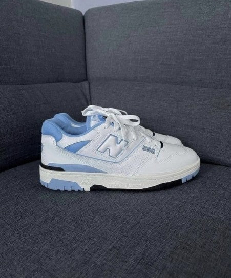 The New Balance 550 "UNC Blue" brings a clean and collegiate vibe to the retro basketball silhouette. Featuring a crisp white leather upper with powder blue accents, this colorway nods to the University of North Carolina’s iconic team colors. The design is completed with perforated panels, vintage-style midsole, and signature “N” branding in UNC blue. It's a perfect blend of sporty nostalgia and everyday streetwear appeal.