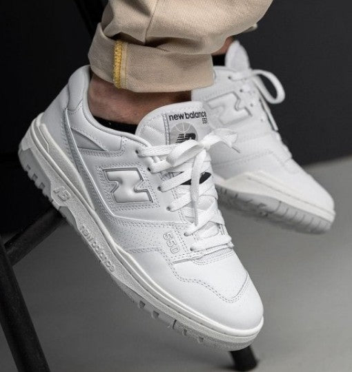 The New Balance 550 White Grey features a clean and timeless design with a white leather upper paired with subtle grey accents on the branding, outsole, and collar. Its retro basketball silhouette, cushioned midsole, and durable build offer both vintage style and everyday comfort—perfect for casual wear or street styling.