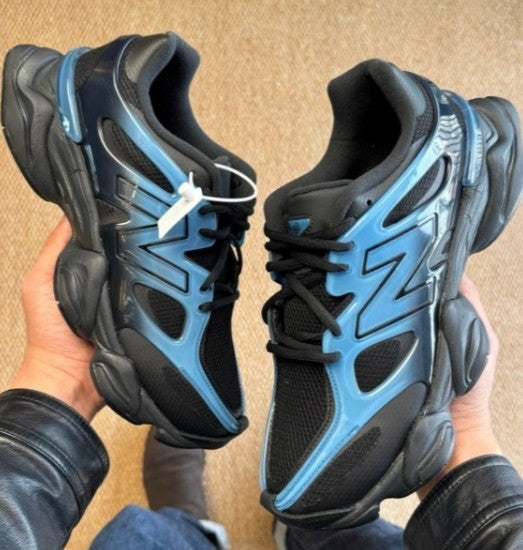 The New Balance 9060 "Gradient Pack" Navy Blue Black blends futuristic design with heritage style. Featuring a sleek mesh and suede upper in deep navy and black tones, it showcases a gradient midsole that adds bold visual depth. With ABZORB and SBS cushioning, it delivers comfort and a standout Y2K-inspired look.