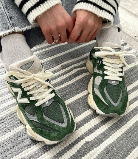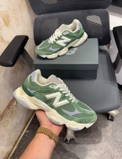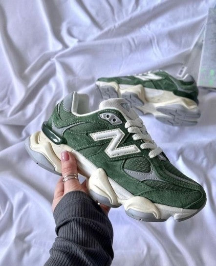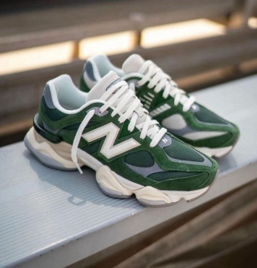 The New Balance 9060 Green combines retro-inspired aesthetics with futuristic design details, offering a bold and eye-catching sneaker. It features a mix of suede, mesh, and synthetic materials in rich green tones, layered for depth and style. The chunky midsole—built with ABZORB and SBS cushioning—delivers superior comfort and stability, while the sculpted outsole nods to early 2000s running shoes. With its exaggerated proportions and unique blend of vintage and modern vibes, the 9060 Green stands out as a lifestyle sneaker with performance roots and everyday street appeal.