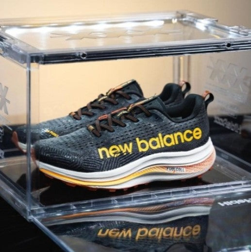 The New Balance FuelCell SC Trail is a cutting-edge trail running shoe engineered for speed and performance on rugged terrain. Built with a lightweight and responsive FuelCell midsole combined with a carbon fiber plate, it offers exceptional propulsion and energy return. The forked plate design enhances flexibility and control on uneven trails.