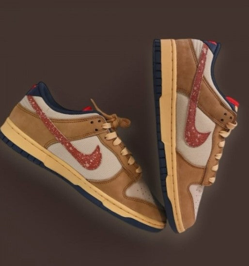 The Nike Dunk Low Retro SE "Wheat Sanddrift" features a soft suede upper in rich wheat tones with subtle sanddrift accents, offering a clean, seasonal look. Its classic Dunk silhouette pairs retro style with earthy hues, making it perfect for both casual wear and fall-ready fits.