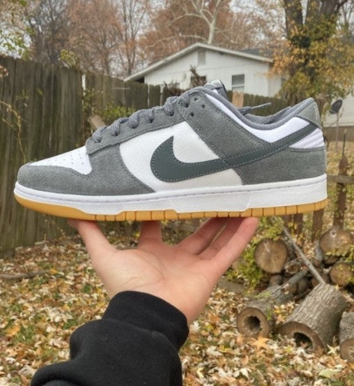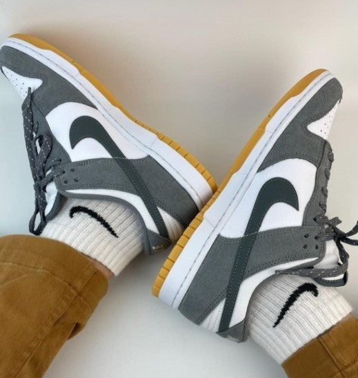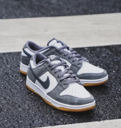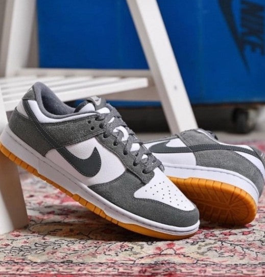 A perfect blend of simplicity and style, the N_ike SB Dunk Low "Grey Gum" features a smooth Wolf Grey upper crafted from premium suede and leather, accented by a crisp white Swoosh and classic gum rubber outsole. Designed for both skate performance and everyday wear, this pair offers all-day comfort with padded collars and responsive Zoom Air cushioning in the heel. Finished with subtle Orange Label touches like the bright orange tongue tag, this versatile colorway is a must-have for sneaker lovers who appreciate clean design with a timeless finish.