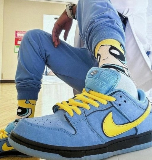 "Step into nostalgia with the Powerpuff Girls x Nike SB Dunk Low 'Bubbles' — electric blue, bold details, and pure 90s energy. Made to pop, just like Bubbles."