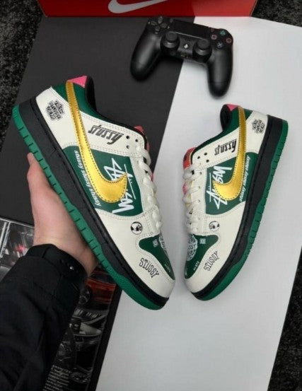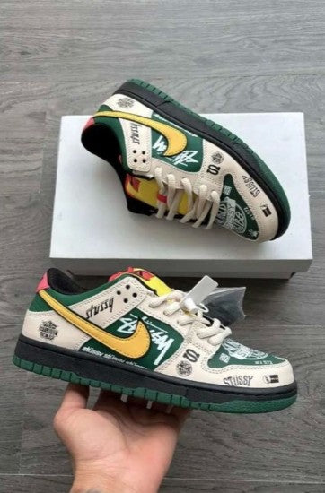The SB Dunk Low Stussy is a standout collaboration between Nike SB and the iconic streetwear brand Stüssy. Featuring premium materials and a sleek colorway, it blends skate heritage with fashion-forward design. Subtle branding and classic Dunk styling make it a must-have for collectors and skaters alike.